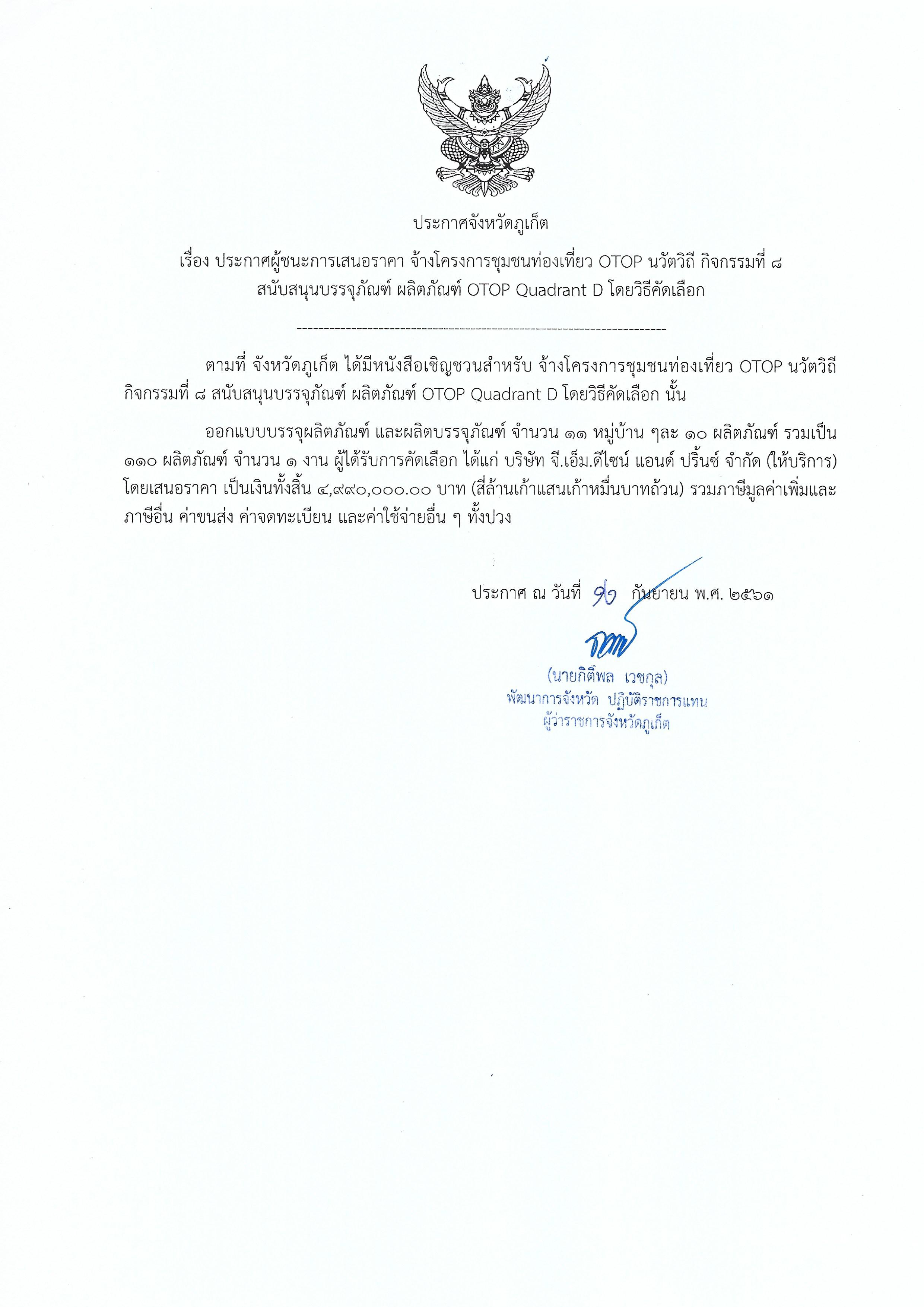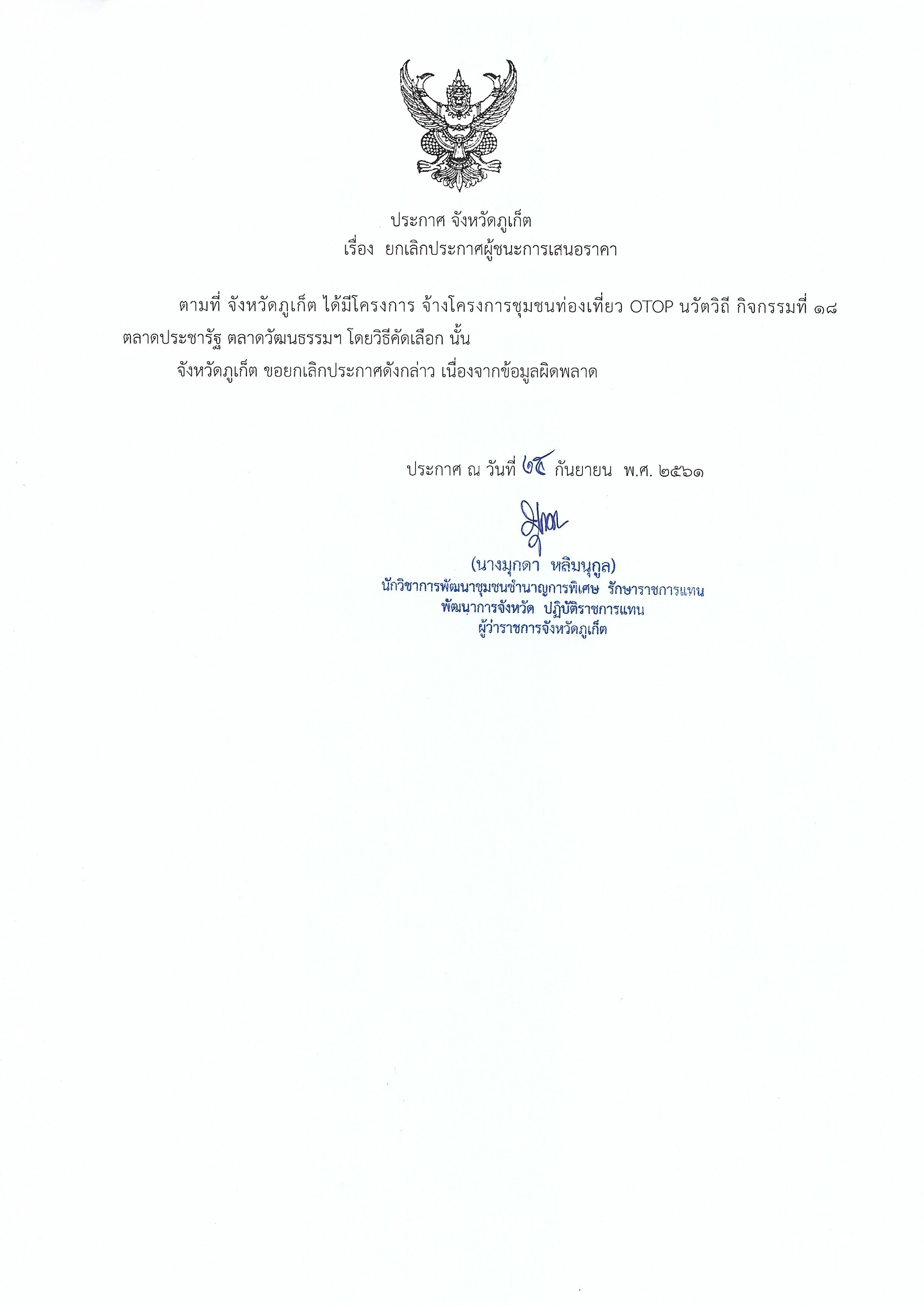 ประกาศจังหวัดภูเก็ต เรื่อง ยกเลิกประกาศผู้ชนะการเสนอราคา