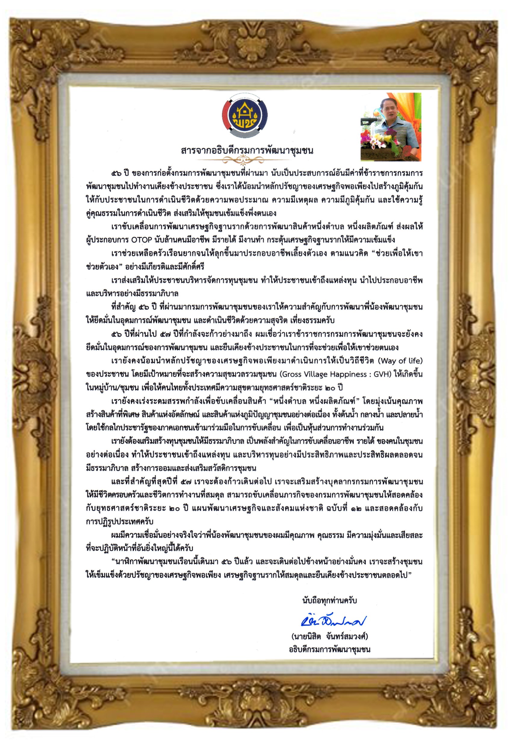 สารจากอธิบดีกรมการพัฒนาชุมชน
